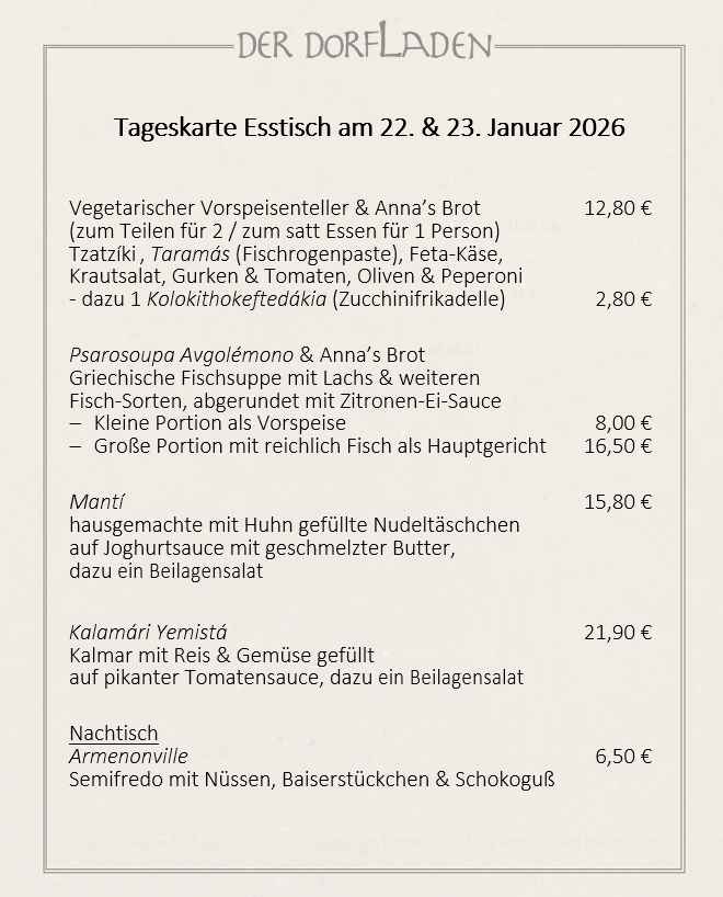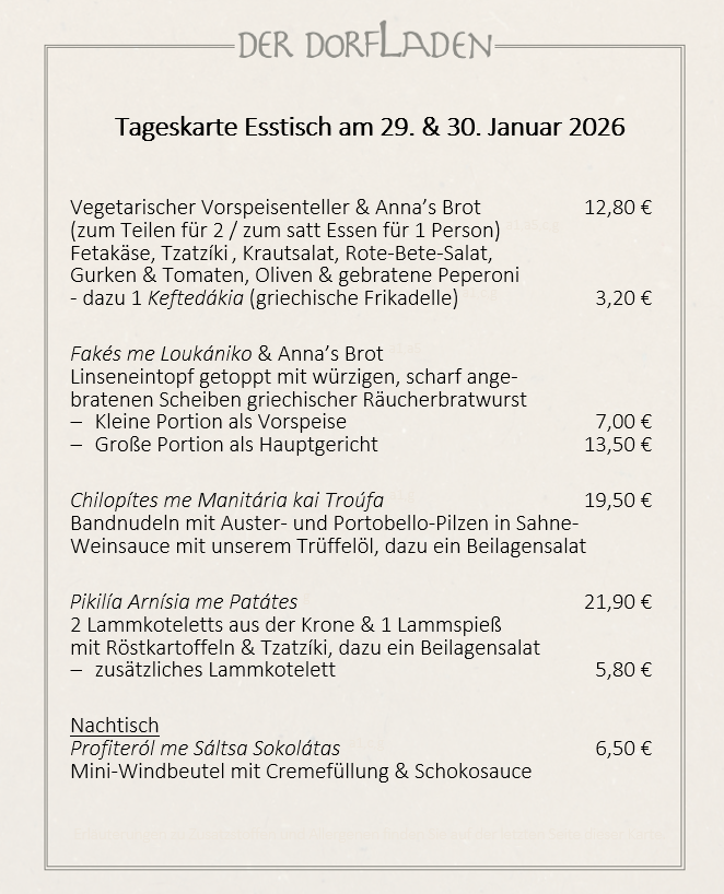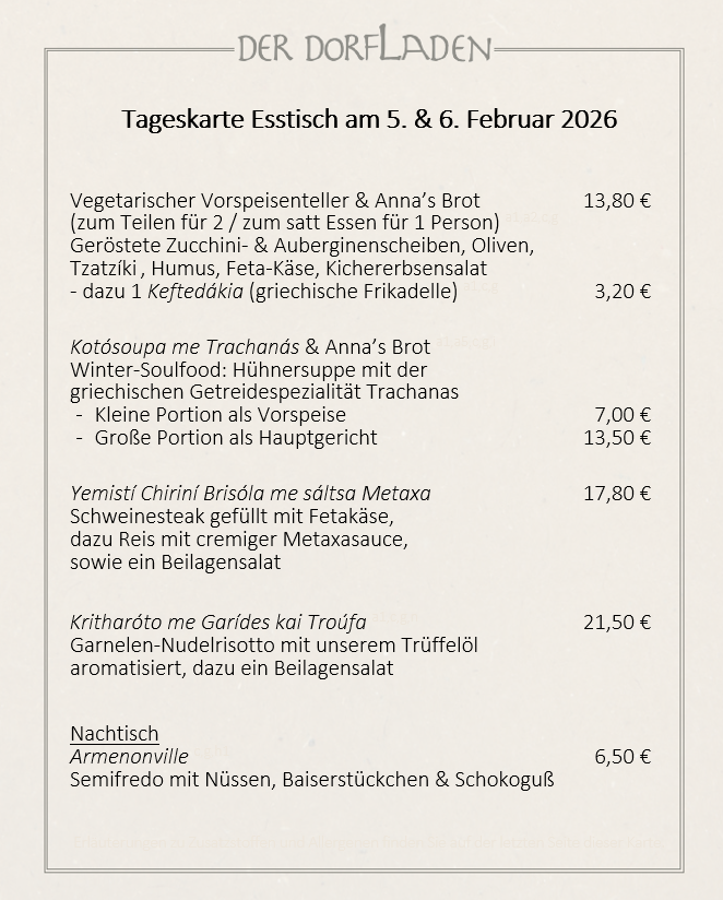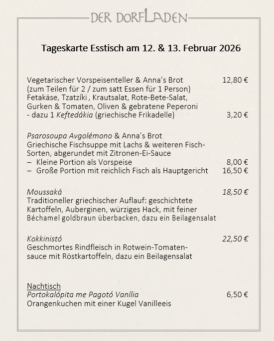 Am Donnerstag und Freitag öffnet DER DORFLADEN ab 17:00 Uhr seine Türen.